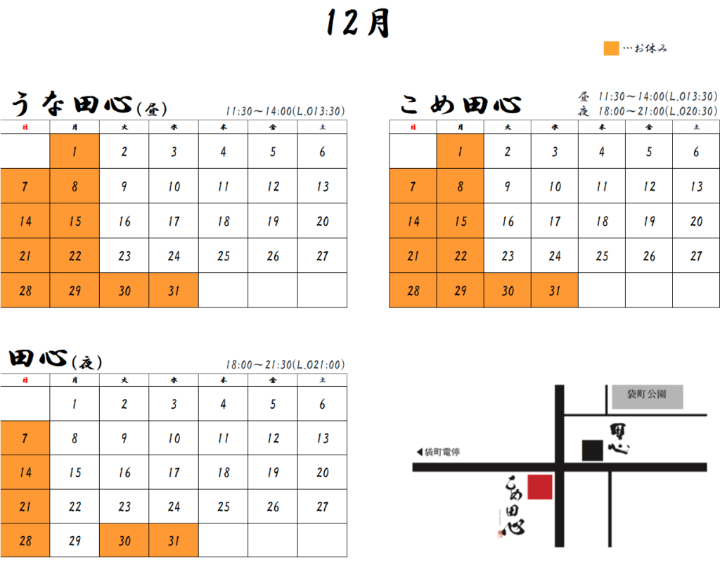 12月店休日のお知らせ
